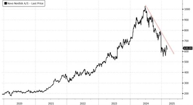 The introduction of Novo's new direct-to-consumer model for Wegovy sent shares in Copenhagen up nearly 4% on Wednesday. Shares are still locked in a vicious bear market, down 40% since peaking in late June 2024.