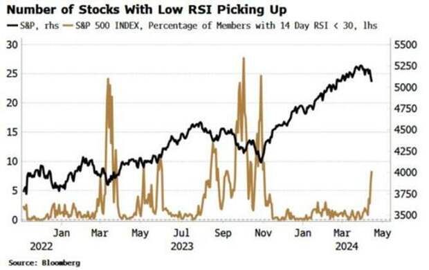 Breadth measures for the US market have in many cases deteriorated to levels last seen in November. The net number of stocks on the NYSE making new highs has fallen to its November lows, and the same for the S&P 500 advance-decline line. The percentage of S&P stocks with their RSI below 30 has hit six-month highs.
