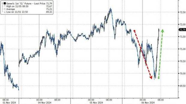 Oil prices are bouncing back from weakness overnight (strong dollar and Trump 'drill, baby, drill' win).