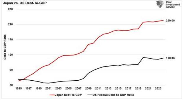 Do both countries have financial concerns? Absolutely. Yet, despite all of Japan’s shortcomings, they have not fallen into bankruptcy or faced economic devastation. In other words, as an investor, betting on the demise of the U.S. at 120% of debt to GDP, in the face of the rise of Artificial Intelligence and its potential impact, will likely be a losing bet.