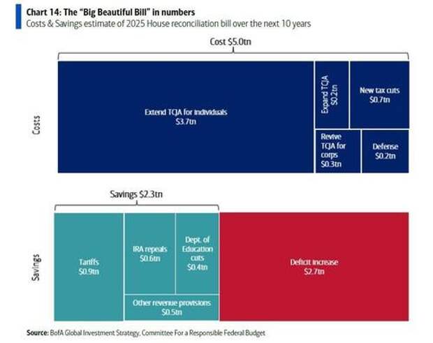 “Here we remind readers, that the Big, Beautiful Bill currently in Congress has been scored to add about $5 trillion to the debt, resulting in what we said would be Debt Doomsday for the US; this is simply a trade-off of short-term prosperity (a few extra trillion in the next 4 years) for long-term economic collapse (that 220% in long term debt.GDP).”