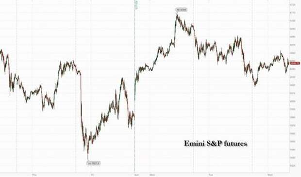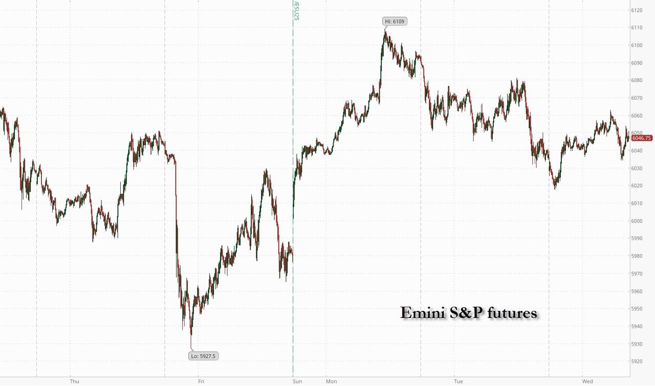 US equity futures are modestly higher into Fed Day, bucking the trend of lower Asian and European markets, as the market shrugs off geopolitics after the US did not join Israel in bombing Iran and the dip buyers return. As of 8:15am, S&P futures are up 0.