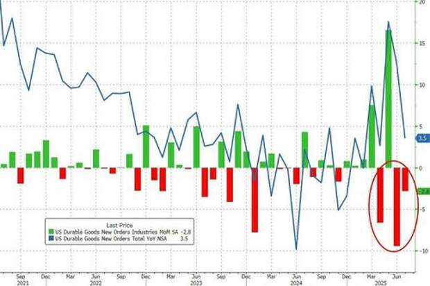 Amid chaotic swings MoM driven by the variability of Boeing plane orders, analysts expected preliminary July data to show a 3.8% MoM decline (following June's big plunge, following May's big surge). The good news is that the actualk print was better than expected (-2.