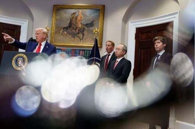 In November, Son and Altman met in Tokyo to hash out an agreement. They next brought their plans to Trump aides with the offer of announcing a giant U.S. investment. On the second day of Trump’s new administration, they stood smiling in the White House beside Trump, vowing to spend $500 billion by 2029.