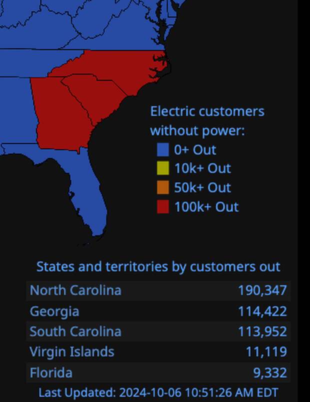 Meanwhile, reports suggest the agency's resources were depleted to address Biden-Harris' open southern border policies that facilitated the greatest migrant invasion this nation has ever seen.On Sunday morning, the latest power data for the US Southeast region showed that across North Carolina, South Carolina, and Georiga, more than 400,000 customers are without power.