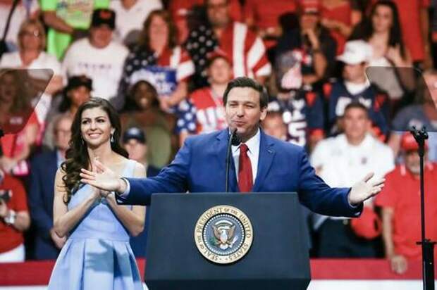 Then-Florida Republican gubernatorial candidate Ron DeSantis and his wife at a Make America Great Again rally in Fort Myers, Fla., on Oct. 31, 2018. Charlotte Cuthbertson/The Epoch Times
