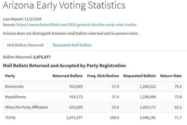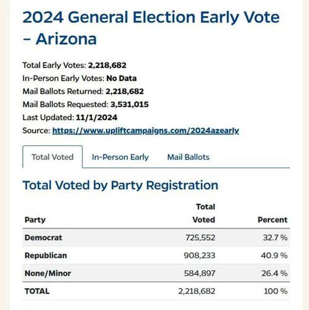 Republicans currently lead the Arizona mail-in ballots by 182,681 votes.