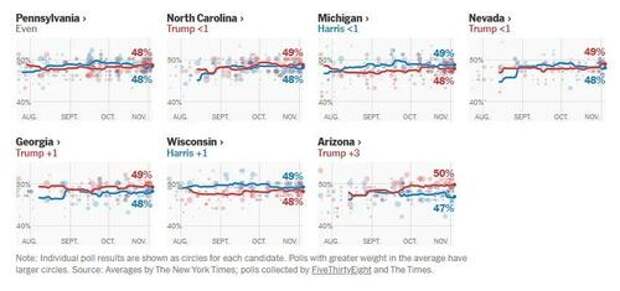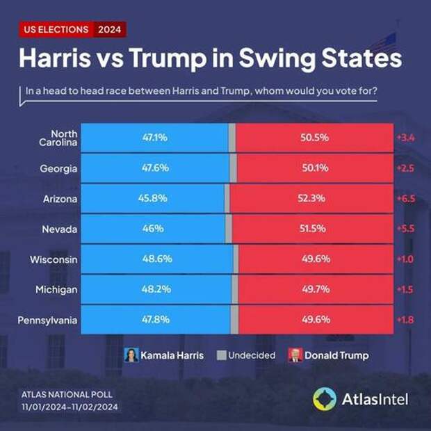 Contrary to much of the polling relied upon by The New York Times, AtlasIntel, which had some of the most accurate polls of the 2020 election, has Trump ahead in every swing state. (Their November 1-2 poll is available here.)