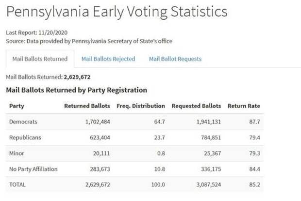 In 2020, Pennsylvania Democrats had a firewall of nearly 1.1 million early votes.