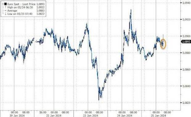 Specifically, in its statement, the ECB kept all three key rates on hold (Deposit Rate at 4.0%, Refi Rate 4.5%, Marginal Lending Rate 4.75%), and said that "aside from an energy-related upward base effect on headline inflation, the declining trend in underlying inflation has continued" where we find the ECB sounding moderately positive about price pressures, as the line warning that “domestic price pressures remain elevated” is now gone. This firms up the case for coming rate cuts are coming as expected, however whether this will be in March, April or beyond, remains to be determined (expect April odds to drop after Lagarde speaks).Some more details from the statement: