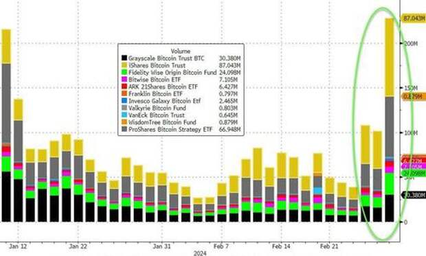 And BTC ETF volumes have exploded, driven mostly by trading activity in IBIT...