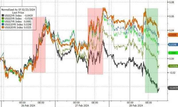 Treasuries were bid across the curve with the short-end outperforming (2Y -5bps, 30Y -2bps). That pulled 2Y and 5Y yields lower on the week...