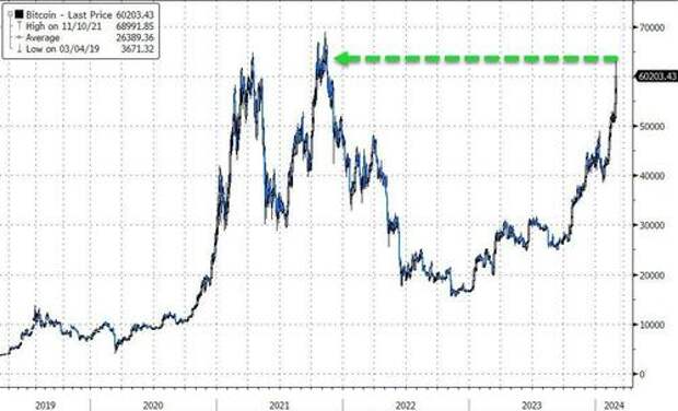 By the end of the US equity trading session, bitcoin was at $60,000, still up 6%...Source: Bloomberg