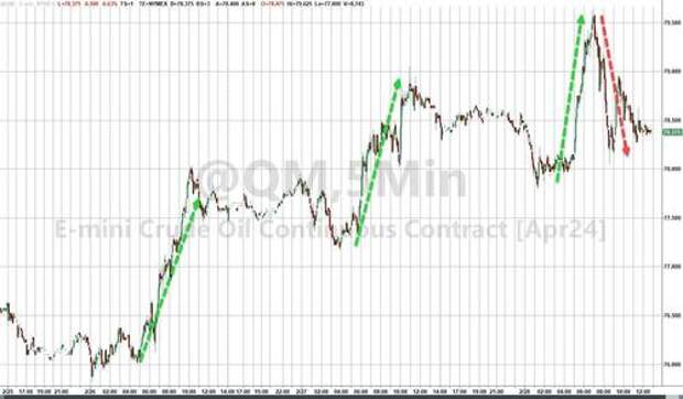 Oil prices ended lower on the day after surging above $79.50 (WTI) before sliding back after the DOE print...