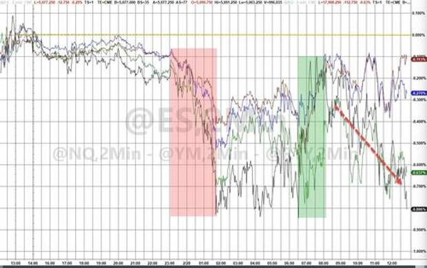 Away from crypto, stocks were lower led by Small Caps and Nasdaq today. Most of the selling pressure hit at the European open (and we bounced back into the European close), but those bounce gains wouldn't hold. The Dow ended the day as the least ugly horse in the glue factory...