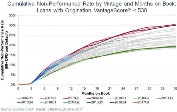 In discussing delinquency trends in deep subprime auto ABS deals, Equifax Chief Economist Amy Crews Cutts recently pointed out that 2016 and 2017 vintage deals are mysteriously performing more like 2007 securitizations than those underwritten in 2010.