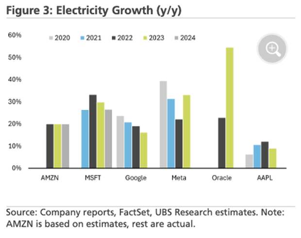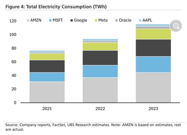 Among the big tech firms, electricity consumption surged 27% year-over-year in 2023, highlighting the surge in data center developments coming online.