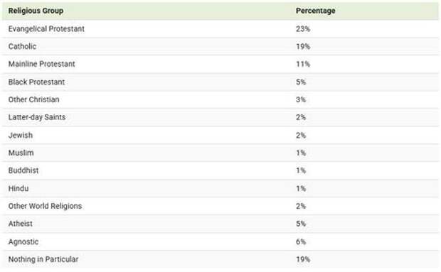 Christian Majority – 63% of U.S. adults identify as Christian, with Evangelical Protestants (23%) and Catholics (19%) as the largest groups.