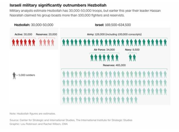 The IDF outnumbers Hezbollah forces by a significant margin.