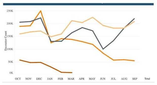Apprehensions are not necessarily arrests. For example, they include requests for asylum. During the Biden administration, migrants could apply for asylum through an app. Trump canceled that app, as well as all asylum appointments upon taking office.