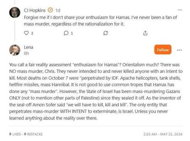 For seven months I have been watching my “radical” colleagues trying to obscure this fact. It isn’t helpful. It doesn’t help anyone. It certainly doesn’t help the Palestinian people. There is more than enough about Israel to criticize. Lying, twisting the facts about Hamas, convincing people that the IDF “Hanniballed” everyone on October 7, is (a) unnecessary, (b) obfuscatory, and (c) destroys your credibility.