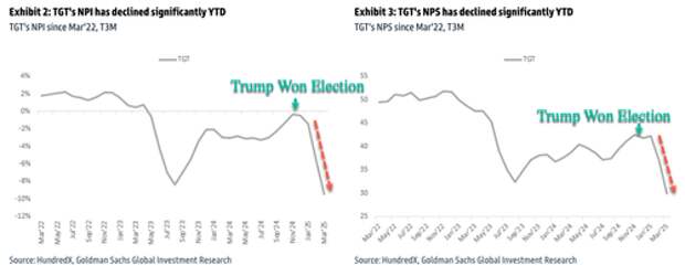 "Specifically, as of Mar '25, TGT's NPI is -9%, lower than its 3-year average of -2% and Mar '24 NPI of -3%; TGT's NPS is 30, lower than its 3-year average of 43 and its Mar '24 NPS of 39," McShane said.