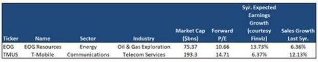 Many stocks meet the size, earnings, and sales growth criteria. But only two companies have cheap enough valuations to make the cut as shown below.