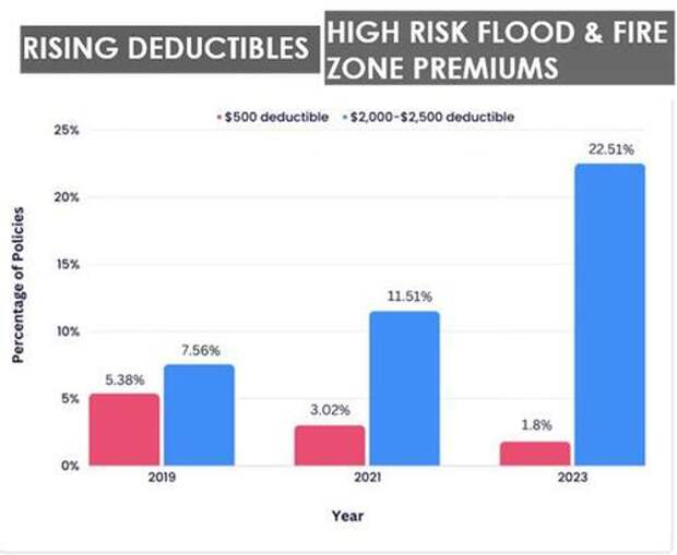 Unsurprisingly, homeowners are responding by raising the deductibles in their policy to lower the annual cost. This is a hybrid of "self-insurance," as homeowners with high deductibles have to have the cash in hand to fund the cost of repairs up to the deductible ceiling.