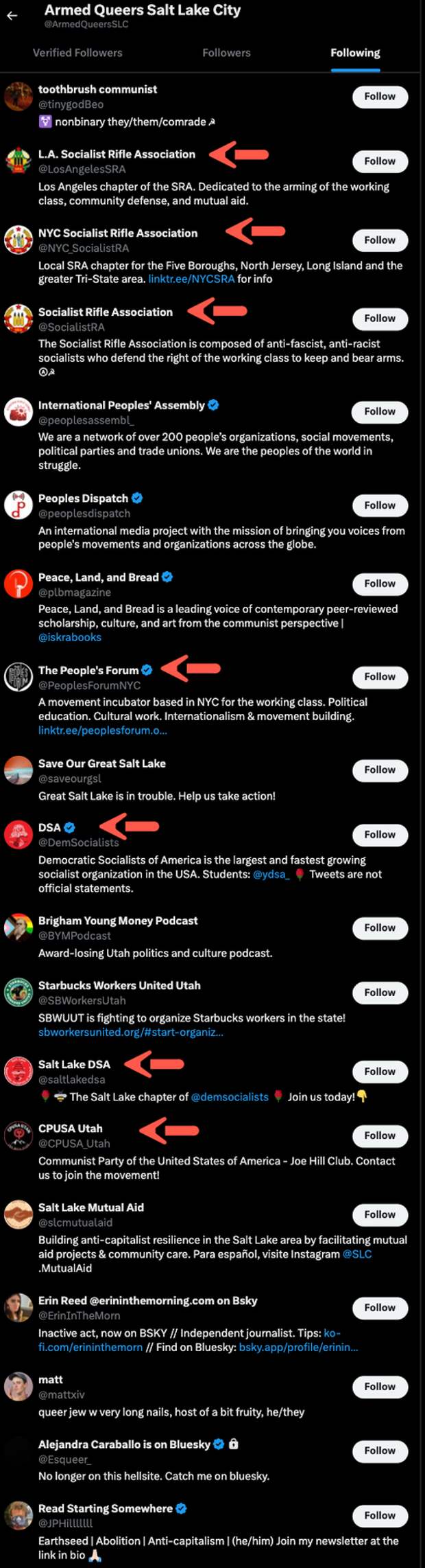 Profiling Armed Queers SLC's X following list, numerous revolutionary groups were identified: