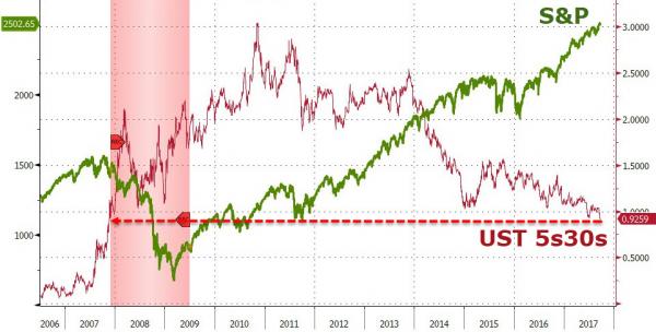 But no matter the collapse of the curve to its flattest since 2007, bank stocks were bid...