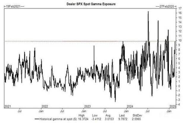 Dealers are long +$9.787 Billion of S&P 500 gamma at current spot, acting as a market buffer, supporting weakness and muting rallies. The Goldman index trading team estimates that 50% of this long gamma position rolls off tomorrow, and the market will have the ability to move more freely next week (read our full preview here).