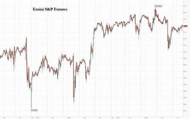 US equity futures are flat, as European and Asian markets rise, as sentiment improves on the last day of the week. As of 8:10am ET, S&P futures were unchanged at 6,138 after Walmart’s forecast and concerns about consumer behavior led to a decline in stocks Thursday; Nasdaq futures gained 0.