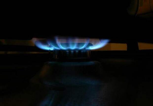 Under a boiling pot of water on a stove, we see blue flames as methane combusts into carbon dioxide and water.