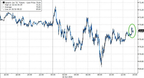 WTI was hovering just above $70 ahead of the API print and rallied into the green for the day after the print...