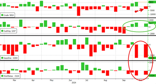 After the large gasoline draw the prior week (and big crude build), the effect of Hurricanes Helene and Milton continue to ripple through physical energy markets. API reports major product draws and a surprise crude draw (build expected) last week. ..
