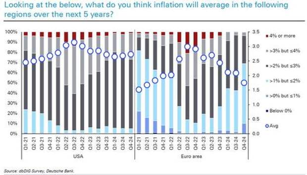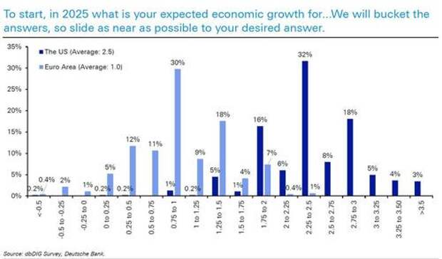 1. Only 2% believe US growth will be below 1% in 2025, whereas that’s the average expected for Europe. The average expected for the US in 2.5%, no respondents think Europe will be at or above this level.