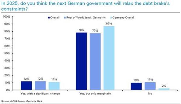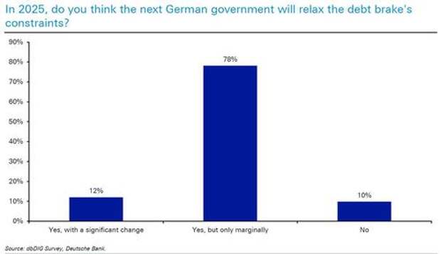 4. The overwhelming majority (90%) believe the German debt brake will be reformed. However, only 12% believe the change will be significant.