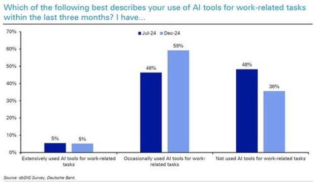 12. AI is increasingly infiltrating the office, but extensive use hasn’t increased in the last 5 months...