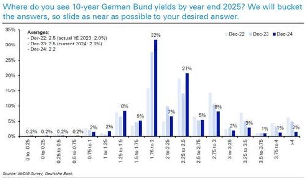 9. Germany yields are seen steady in 2025 on average but with 50% expecting 10yr yields to end the year less than 2%