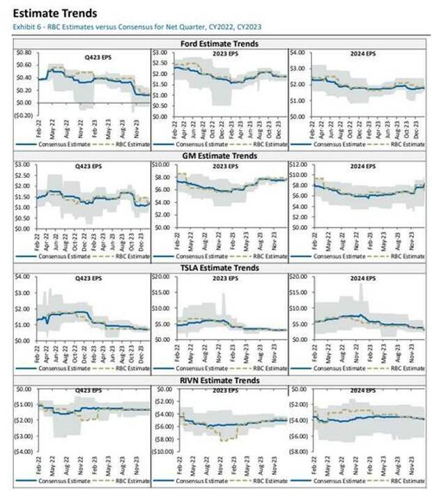 Citing his reasoning for the EV slowdown not bottoming out, Narayan wrote that "Ford’s EV losses worsened sequentially again in Q4/23 (-$1.57B in Q4 vs -$1.329B in Q3). EV loss guidance for 2024 came in worse than consensus expectations (~-$5B+ vs ~-$4B)."