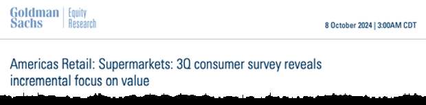 An inconvenient truth for Harris and Democrats is a new consumer survey from Goldman, which reveals in a note to clients titled "Americas Retail: Supermarkets 3Q Consumer Survey Reveals Incremental Focus on Value," that value-seeking behaviors dominate consumers.