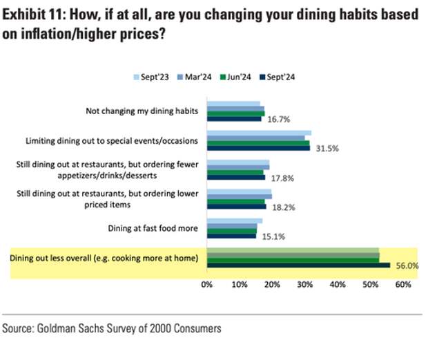 Elevated inflation and high interest rates keep respondents at home for their meals.