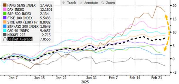 For those newly minted 401(k) millionaires, just hope the US exceptionalism theme does not continue fading...