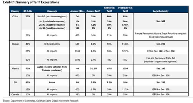 "Hatzius noted, "And while we viewed a "universal tariff" as a clear risk, the president's comments suggest that, for now, it is a lower priority than we would have expected."