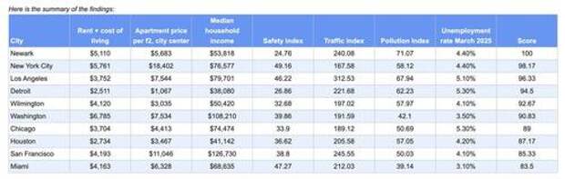 The study analyzed a wide range of metrics — including housing costs, income, safety, traffic, pollution, and unemployment — using data from sources like the U.