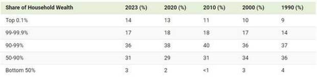 In fact, the richest 0.1% and 1% were the only two rungs to see their share increase since 1990.