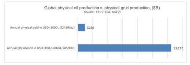 He repeatedly reminds that the global oil market is 12-15x the size of the global gold markets in physical production terms: