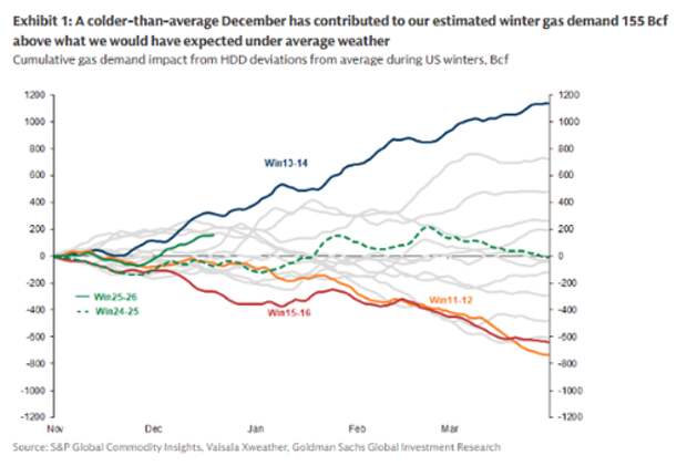 Goldman sales trader Ranald Falconer updated clients on weather forecasts and natural gas markets, noting that persistent cold continues to grip the eastern half of the US, while the western part of the country is experiencing well-above-seasonal temperatures.