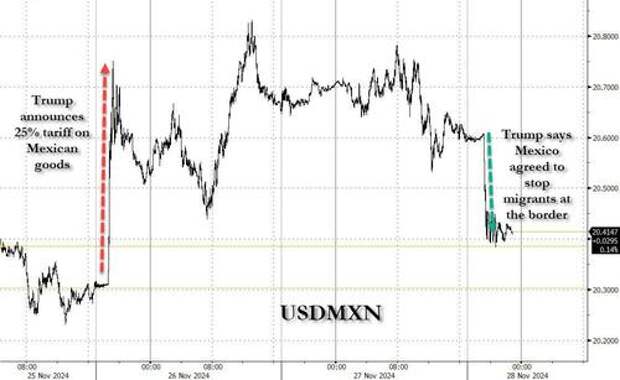 He added that the two also talked about "what can be done to stop the massive drug inflow into the United States" concluding that it was a "very productive" conversation which of course, it would be, if indeed Trump - who again is still two months away from inauguration - managed to solve the US border crisis just 48 hours after using targeted tariffs as a bargaining chip.