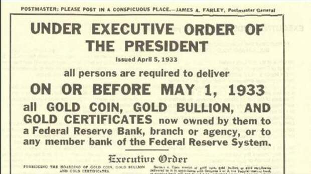 It read, in part: “Deliver on or before May 1, 1933, to a Federal Reserve Bank or a branch or agency thereof or to any member bank of the Federal Reserve System all gold coin, gold bullion, and gold certificates now owned by them or coming into their ownership on or before April 28, 1933.”